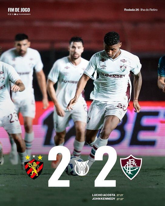 O Fluminense ficou no empate em 2 a 2 com o Sport de Recife, lanterna do Brasileirão, em jogo que foi disputado na Ilha do Retiro. E novamente o Tricolor perdeu pontos após a entrada do jogador Soteldo, que permitiu o cruzamento de um atleta pernambucano. Com o resultado, o Flu perde a chance de encostar no G4 do Brasileirão.
