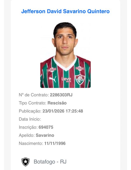 A rescisão do atleta já está disponibilizada no BID, mas ele ainda não foi registrado como jogador do Fluminense. E o Tricolor das Laranjeiras só poderá utilizá-lo contra o Grêmio, já que ele ainda não estará inscrito contra o Flamengo, no Fla x Flu deste domingo, muito provavelmente.