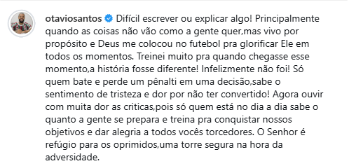Otávio, que perdeu o pênalti que acabou consagrando o rival Flamengo campeão carioca, sentiu o pênalti perdido e agora considera deixar o Tricolor. A informação é do jornalista Paulo Brito. O jogador inclusive manifestou seu pedido de saída para a diretoria, que recomendou que o mesmo se manifestasse lamentando o fato. Porém, isso parece ser insuficiente.